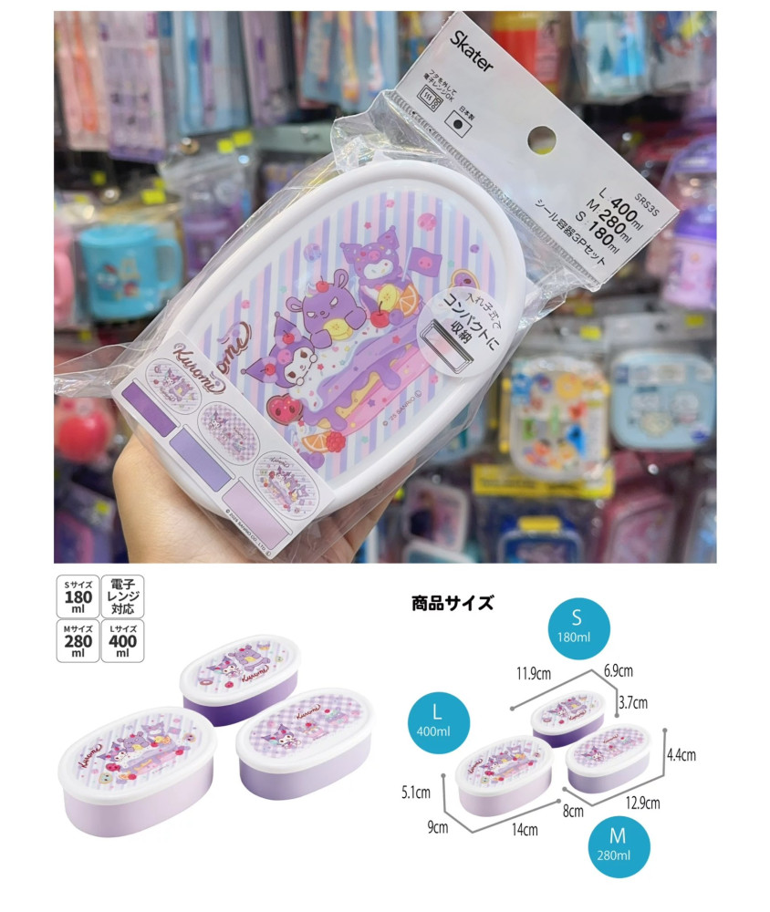 Kuromi Skater 食物盒/餐盒(日本製)(一套3個不同大小)